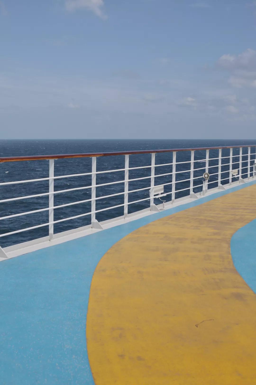 在郵輪上的第五日,旅程已經(jīng)接近尾聲,早上醒來的時候,從舷窗望出去,海上的天空是將欲破曉的深藍(lán),心里突然涌起上甲板看日出的念頭。