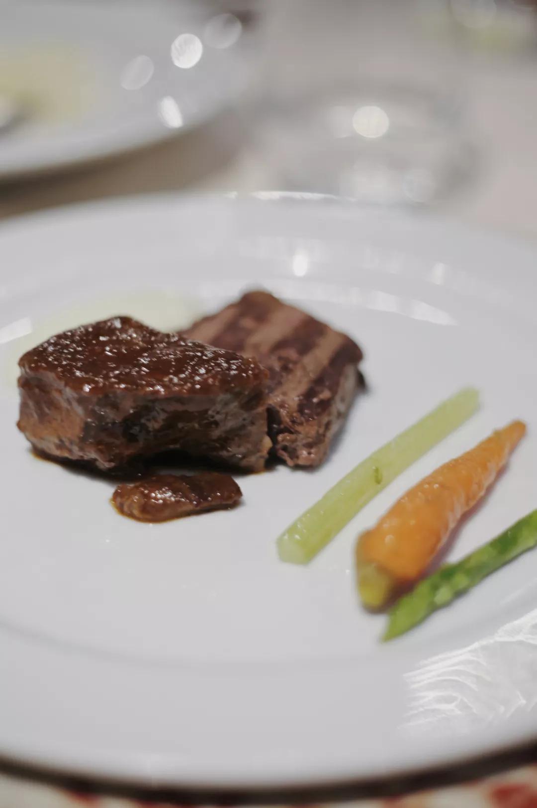 從Amuse-Bouche的馬蘇里拉芝士醬配番茄慕斯開始便已挑起視覺和味覺的雙重愉悅;由新西蘭與南極間深海海域打撈而上、正當(dāng)時的海鰲蝦去殼做成薄片,點綴清新柑橘乳與魚子醬,返璞歸真的料理手法激發(fā)舌尖至味;香煎澳大利亞牛里脊及燉牛肩肉配土豆泥,將牛肉中至為細(xì)嫩的部位入饌,帶來如生蠔般的口感。