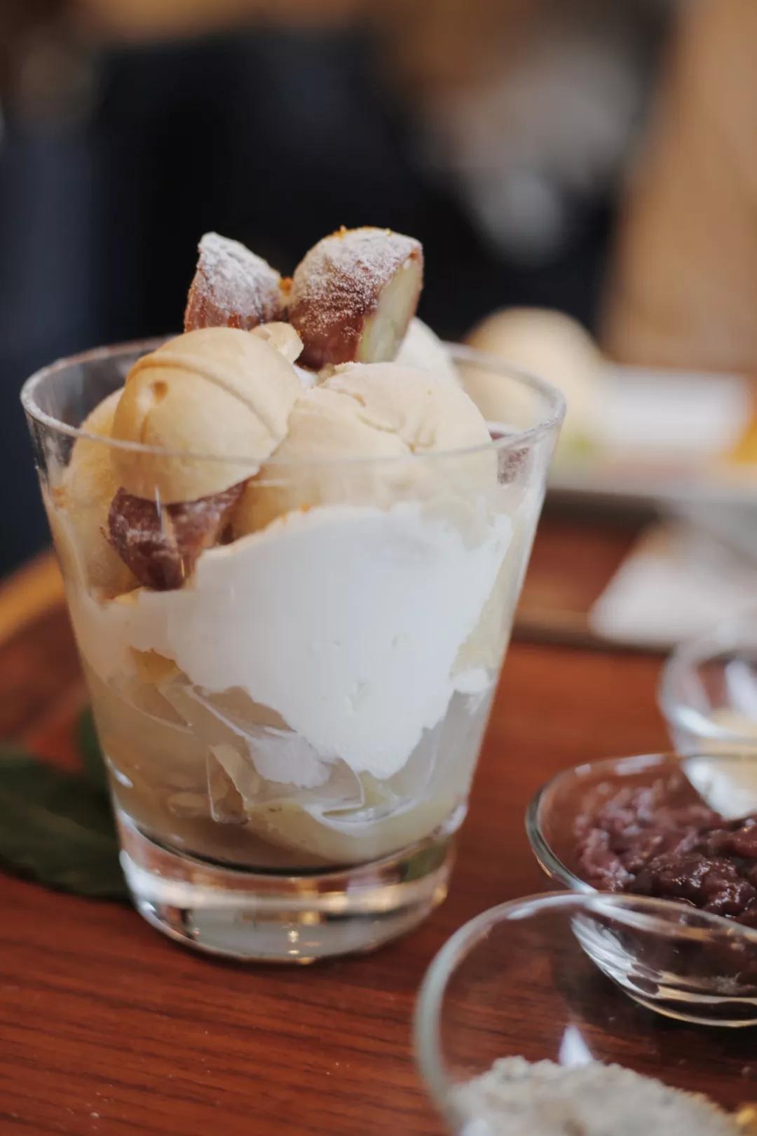 對甜品毫無抵抗力的我們當(dāng)然沒有善罷甘休,又嘗試了布丁與冰淇淋。布丁滑進(jìn)嘴里時還帶著焦糖的濃郁香氣, 冰淇淋上覆蓋著蒸得軟糯的栗子,每一勺的綜合口感都叫人雀躍。在福岡的第一站,因為好吃的甜點,一整天都元氣滿滿。