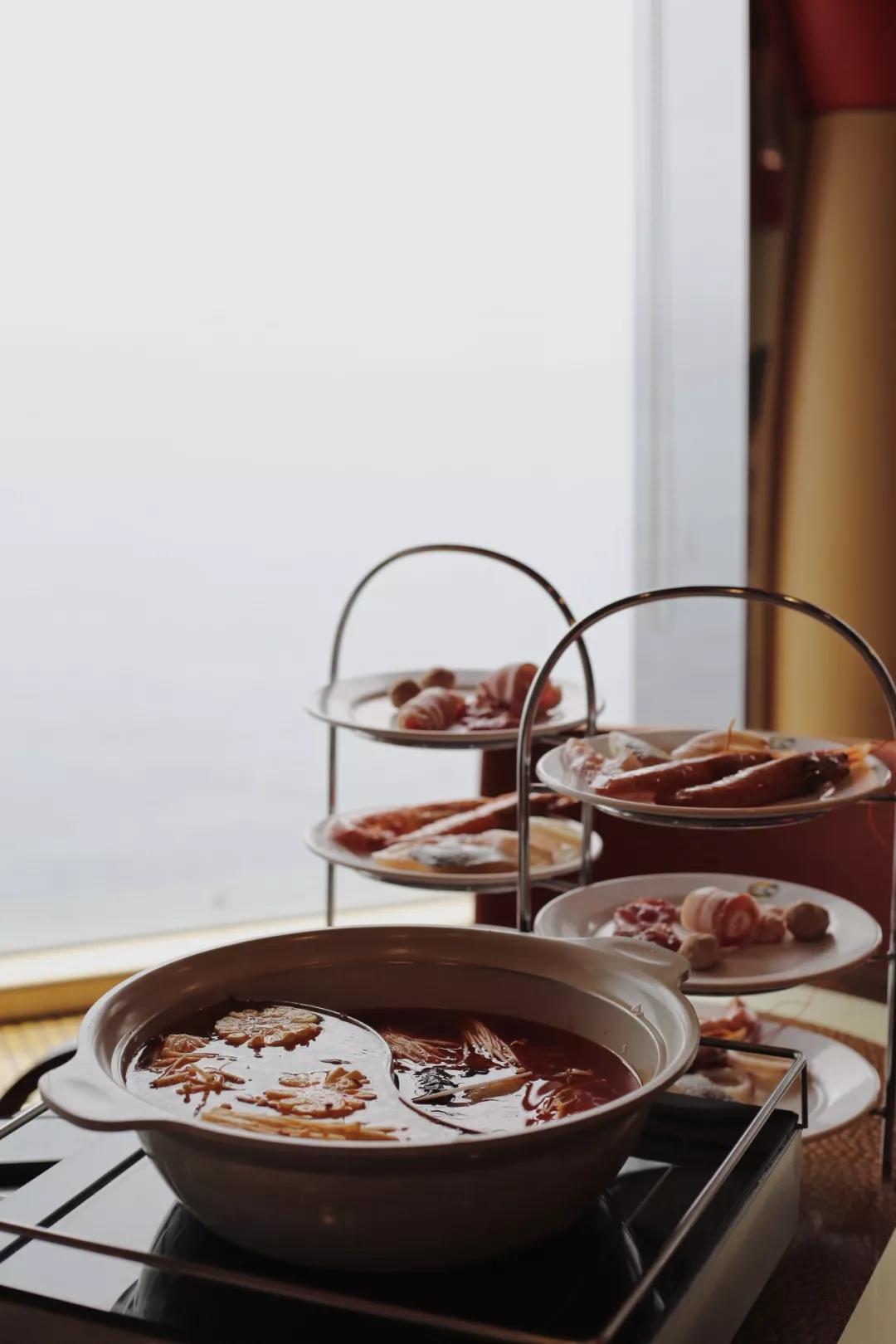 滾熱的油、辛辣的香,聽咕咚咕咚的煮沸聲,吃進(jìn)去是咂舌的快意。熱騰騰的食物堆在一只鍋里其樂融融,抬眼一望,窗外是同樣起起伏伏的海浪,這樣的涮鍋經(jīng)歷大概也是獨一份了。