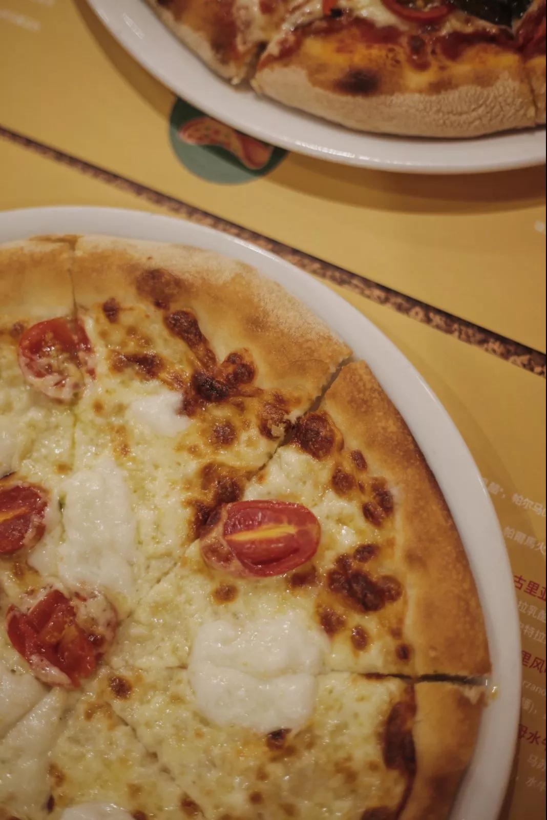 無多余裝飾,餅底薄而有嚼勁,芝士拉絲的那一刻,回歸披薩最純粹的味道,番茄與芝士的綜合口感肆意充盈,帶來十乘十的滿足感。吃之前別忘了說一句,"Buon appetito (好胃口) !"