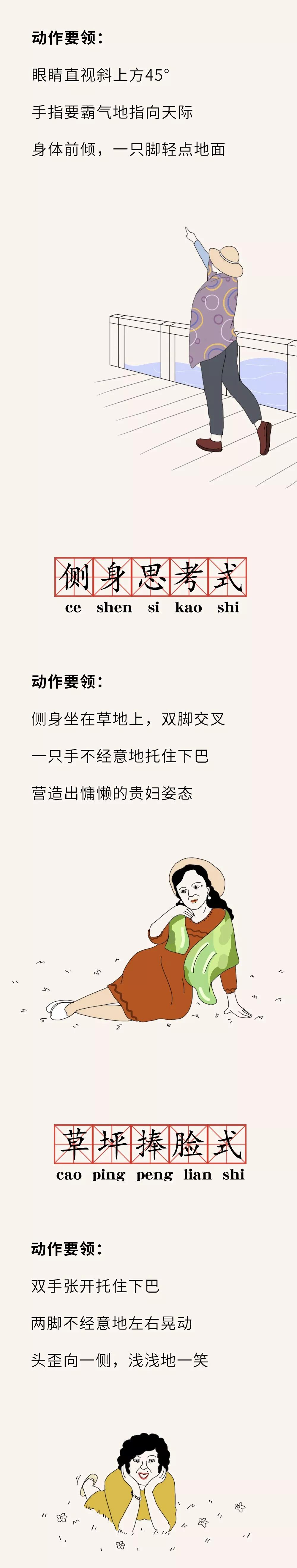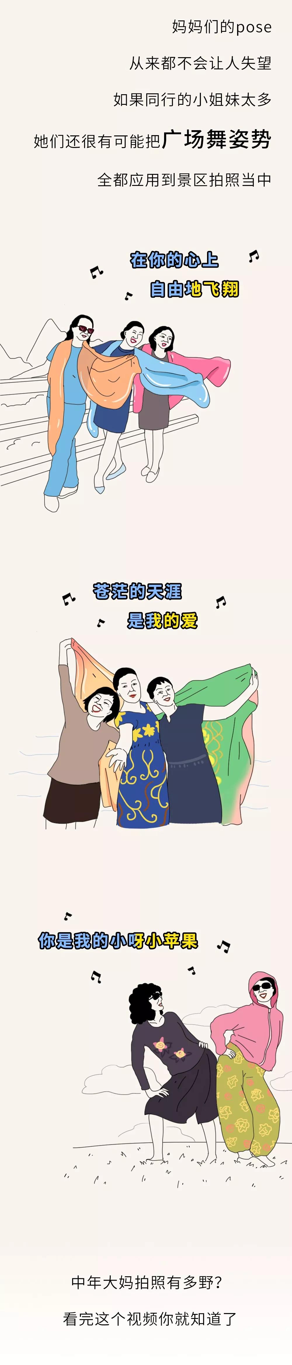 不得不佩服大媽們的新潮,當(dāng)90后拍照還在嘟嘴比剪刀手的時(shí)候,她們已經(jīng)研究出了各種奇特的拍照姿勢(shì),分分鐘亮瞎你的鈦合金狗眼。廣場(chǎng)舞可以不跳,但拍照絕對(duì)不能含糊。拍照道具有三寶:墨鏡、絲巾、太陽(yáng)帽,經(jīng)典造型有三套:拈花、揚(yáng)手、翹個(gè)腳。看完她們和小姐妹的朋友圈曬照,你總會(huì)忍不住哼起那句:最美不過夕陽(yáng)紅,溫馨又從容……