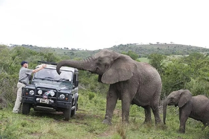 因?yàn)橄矚g動物,他們散盡家財在南非的森林旁買了塊20平方公里的草地。