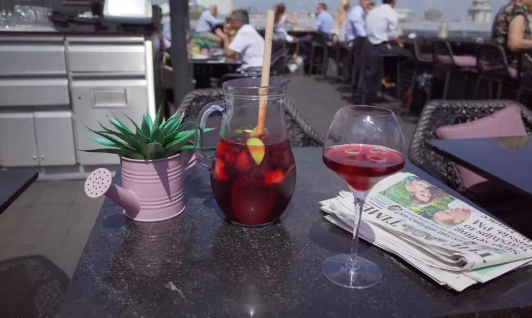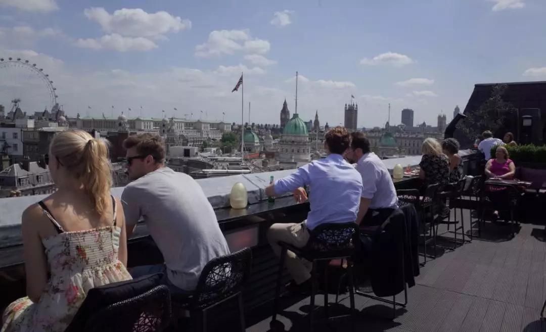 這家酒吧屬于Trafalgar Hotel 內(nèi)部的屋頂酒吧,最有名的點(diǎn)是因?yàn)樗驮谔乩訌V場(chǎng)(Trafalgar Square) 正旁邊,所以邊喝酒可以邊看著廣場(chǎng)的車(chē)水馬龍與人們,另一面則看得倫敦眼。這間屋頂酒吧只有在春夏季節(jié)時(shí)才啟用,入場(chǎng)也是從飯店大聽(tīng)坐電梯上樓,常常到下午會(huì)人潮爆滿(mǎn)的情況,而且四點(diǎn)后會(huì)收入場(chǎng)費(fèi)£5,自己要抓一下時(shí)間。之前跟哥們來(lái)常常會(huì)點(diǎn)一壺Sangria 喝酒聊天曬太陽(yáng),非常愜意。