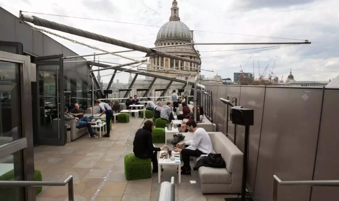 在圣保羅大教堂旁邊的One New Change購(gòu)物中心頂樓,有室內(nèi)也有室外空間,白天跟晚上的氛圍不太一樣,晚上圣保羅也會(huì)打燈,晝夜都很適合來(lái)。
