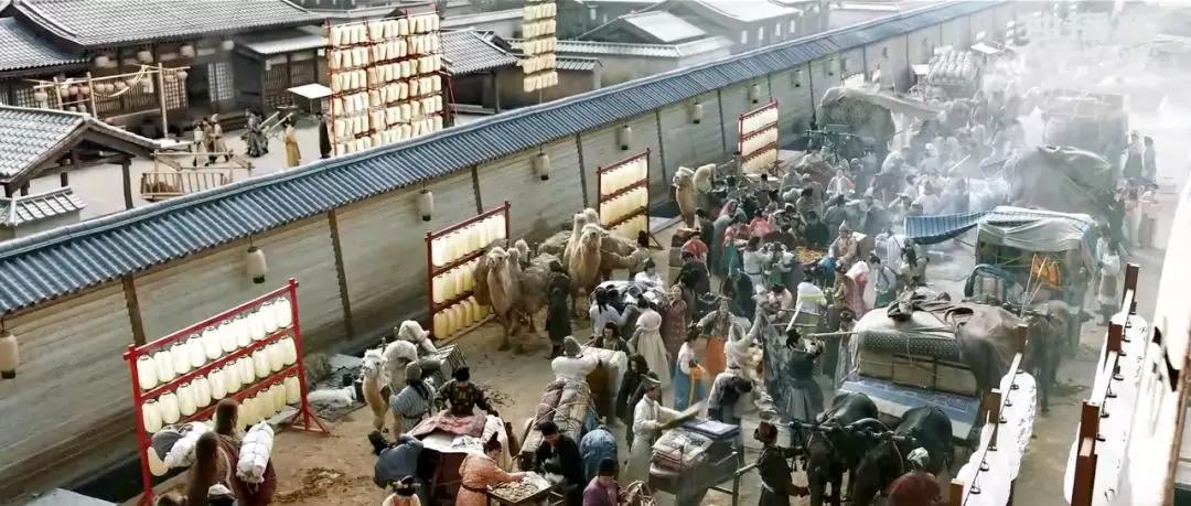 一開場(chǎng)的長鏡頭就體現(xiàn)了大唐的熱鬧繁華,展現(xiàn)了萬國來朝的宏大氣象!