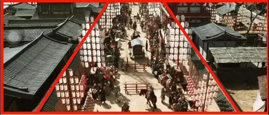 黃金螺旋構(gòu)圖、九宮格構(gòu)圖、斜線構(gòu)圖、三分法構(gòu)圖、縱深構(gòu)圖……光線自然,陰暗交錯(cuò),不同時(shí)辰的場(chǎng)景層次分明,堪稱國產(chǎn)劇一流水平。