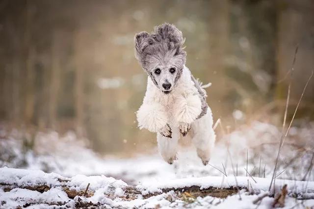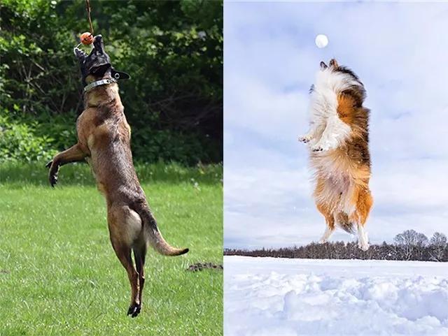 與跑步相比,這一題材相對(duì)簡單,只需要狗主人/助手配合,發(fā)出讓狗狗跳起的指令就行——拿著玩具,樹枝,食物都可以。