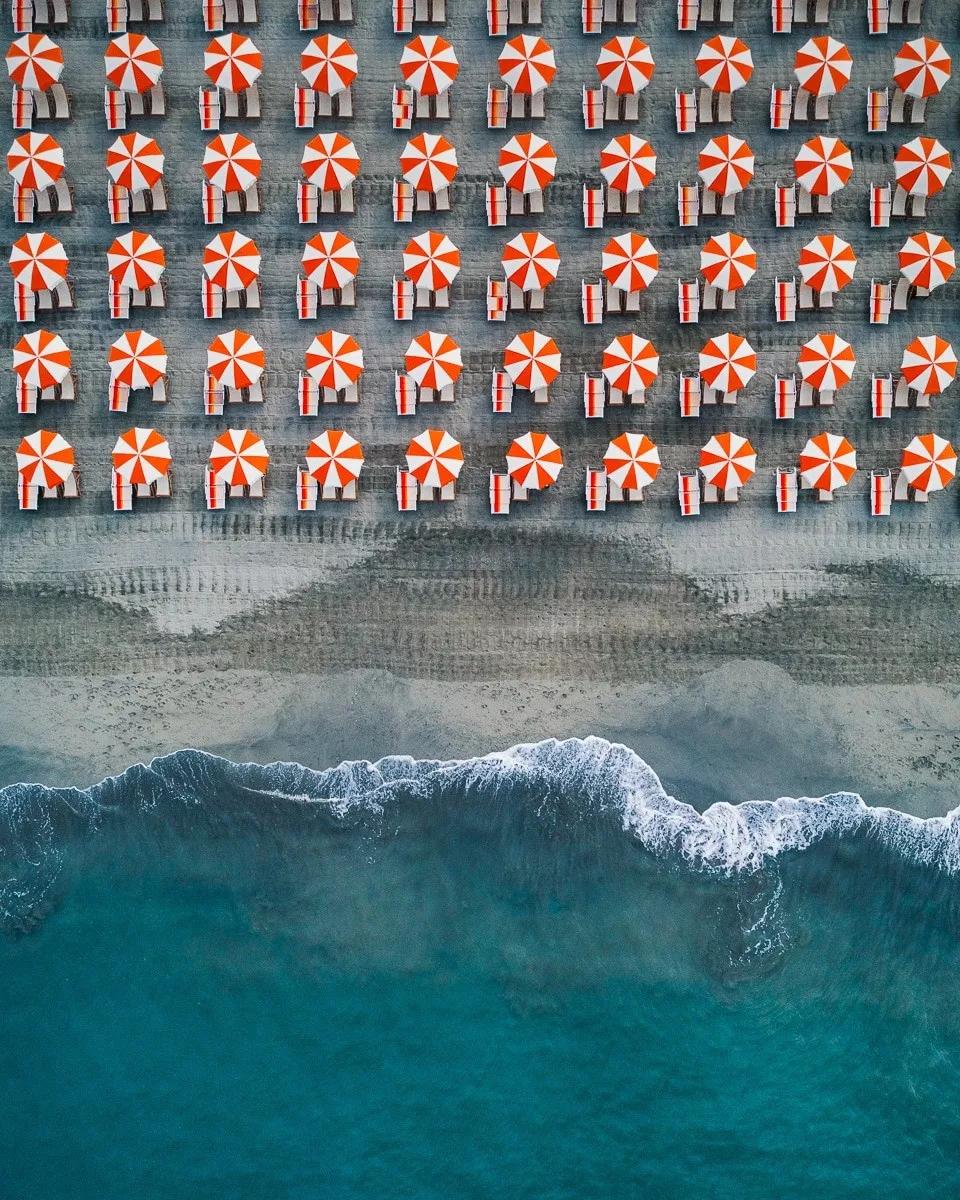 不論是對(duì)稱(chēng)停放的車(chē)輛,還是海邊遮陽(yáng)的花傘,他們所找到的有趣的排列組合,對(duì)于觀看者來(lái)說(shuō)都是一種享受。