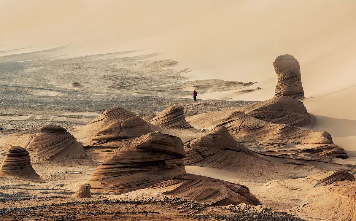 早抵達(dá)哈密東站前往游覽電影《無人區(qū)》的主要拍攝地【五堡魔鬼城】(車程單程約1.5小時(shí)參觀約1.5—2小時(shí)),它是風(fēng)和沙的雕塑藝術(shù),形態(tài)各異的土堆屹立在空曠的大沙漠上,土堆渾身上下清晰地記載著歲月洗禮的年輪,傲骨凌風(fēng)的身軀驕傲地向你講述著生命的意義;