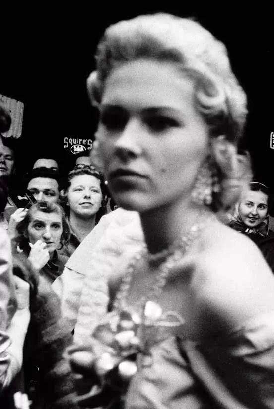 他在擁擠的大街上,在暗淡的酒吧里,在熱鬧的集會(huì)中,甚至在行駛的汽車?yán)?,利用徠卡相機(jī)不搶眼的特點(diǎn)以及高速膠卷、廣角鏡頭和超焦距等便利,完全用現(xiàn)場(chǎng)光,大量搶拍所見到的一切。