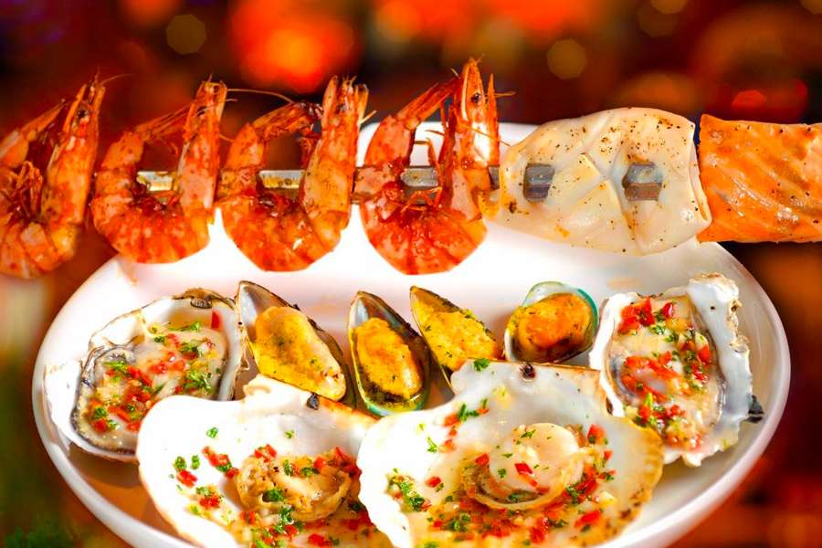 4、【舌尖美食】海鮮BBQ、海鮮火鍋、水果拼盤,餐餐特色;