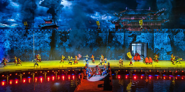 觀賞世界首家頂級環(huán)繞室內實景舞臺秀,進入三萬平方超大演藝劇場,乘坐會跑的觀眾看臺,打破了五千年來單一的舞臺觀演模式,欣賞真山真水演出;
