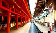 【春日大社】(約40分鐘)于768年為了守護(hù)平城京及祈禱國家繁榮而建造。是藤原氏一門的氏神,由武翁槌命乘鹿而來的傳說,把鹿作為神的使者,春日山的春日大社是日本全國各處的春日大社的總部,奈良公園與伊勢(shì)神宮、石清水八幡宮一起被稱為日本的三大神社,春日山作為春日大社的神山,千年以來都被禁止砍伐,因而遍布著以槲樹、米儲(chǔ)類樹木等為主體的常綠廣葉林的原始森林,由于春日大社從公元9世紀(jì)起禁止采伐樹木,原始林得以保護(hù),并作為與春日大社不可分離的景觀和春日大社一起被列入聯(lián)合國科教文組織的《世界遺產(chǎn)名錄》;