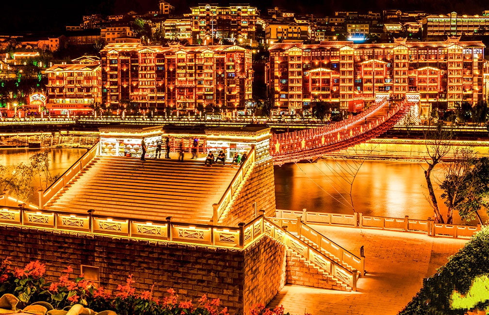 夜幕降臨后,赤水河畔的【茅臺(tái)鎮(zhèn)】,風(fēng)姿韻味無法言語(yǔ)形容,一步一景,步步驚心,美不能再美,赤水河岸邊,房屋上,樹木上,吊橋上,茅臺(tái)渡口,到處飄逸燈光彩帶,一層一層向山上蔓延;