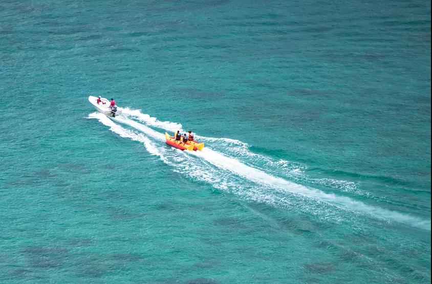 站在沙灘上,浩渺而又純凈的藍(lán)不斷涌來(lái),依深淺的不同呈現(xiàn)出黃、綠、淺藍(lán)、深藍(lán)幾種顏色,仿佛畫上的風(fēng)景,島上可參加潛水等海上娛樂(lè)項(xiàng)目(海上娛樂(lè)項(xiàng)目費(fèi)用不含)或游泳拍照;