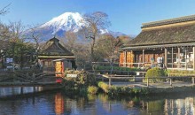 【忍野八海】(約30分鐘) 被譽(yù)為“日本九寨溝”,是忍野地區(qū)指定的國(guó)家自然風(fēng)景區(qū),1985年入選“日本名水百選”。忍野八海是日本山梨縣山中湖和河口湖之間忍野村的涌泉群,由富士山融化的雪水經(jīng)過(guò)地層過(guò)濾而成。因?yàn)殄e(cuò)落有致地散布著八個(gè)清泉,故得名“忍野八?!?,這里也是觀看和拍攝富士山的好地方。泉水平均水溫約13℃,水質(zhì)清冽甘甜,可以飲用,也可以在附件的土特產(chǎn)店鋪里買(mǎi)瓶裝的帶走;