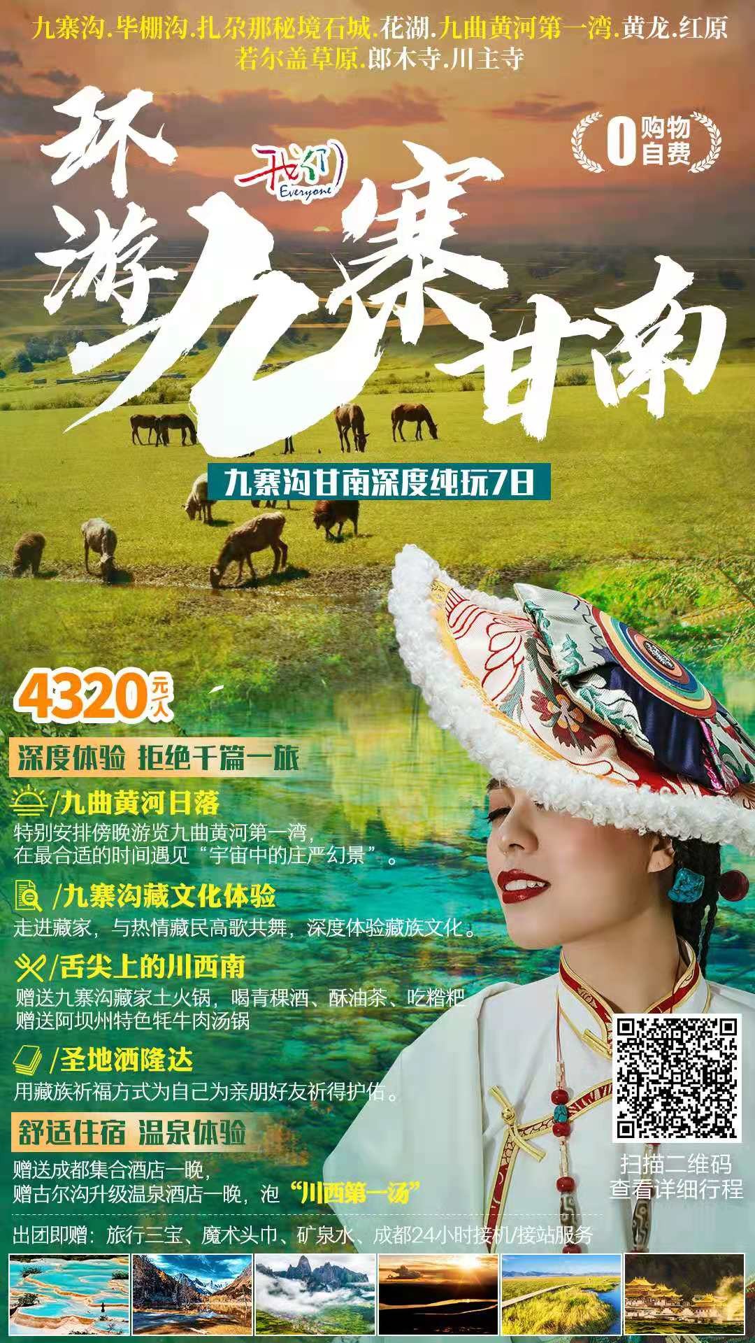 1、門票:含九寨溝門票、畢棚溝門票、若爾蓋花湖門票、甘肅郎木寺門票、黃龍門票、九曲黃河第一灣門票;(優(yōu)惠及退票請現(xiàn)詢報(bào)名處。)