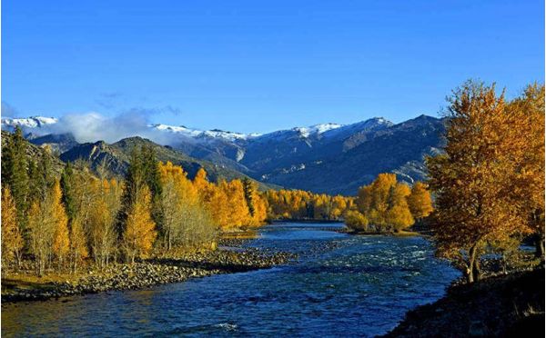 到達可可托海鎮(zhèn)后享用午餐游覽位于額爾齊斯大峽谷的【可可托海國家地質(zhì)公園】(含區(qū)間車)(游覽約120分鐘)可可托海哈薩克語意思為"綠色的叢林"。蒙古語意為"藍色的河灣"。正如其名,可可托海的水是藍色的和綠色的,這里是全國第二寒極。乘坐區(qū)間車途中參觀【白樺林】,野生樺樹林生長在額爾齊斯河凸岸河灣上,嫵媚婆娑,柔軟的枝條舒緩下垂,伴著清風纖纖舞動,綽約若處子,曼妙無比;【神鐘山】,又稱阿米爾薩拉峰,如一口巨大座鐘立于額爾濟斯河畔,是當?shù)卦∶竦木駡D騰。