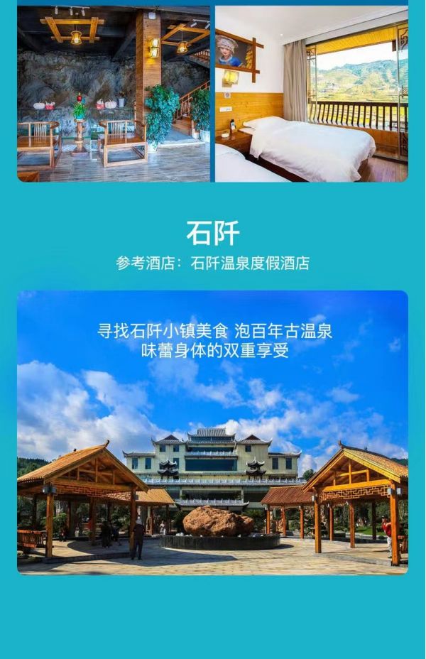 到達石阡入住酒店后自由活動,您可以選擇稍作休息去泡石阡溫泉,也可以約上三五團友一起去尋找石阡美食,今日晚餐不含,您可以自行選擇心儀美食。