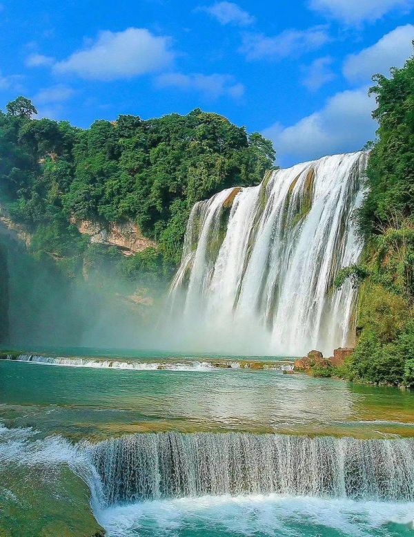 陡坡塘瀑布(83版西游記片尾曲取景之處)位于黃果樹瀑布上游1公里處,是一個高21米,寬達105米的天然壩型瀑布,也是黃果樹瀑布群中zui寬的瀑布。洪水時節(jié),瀑布會發(fā)出汽笛叫聲,俗稱“吼瀑。