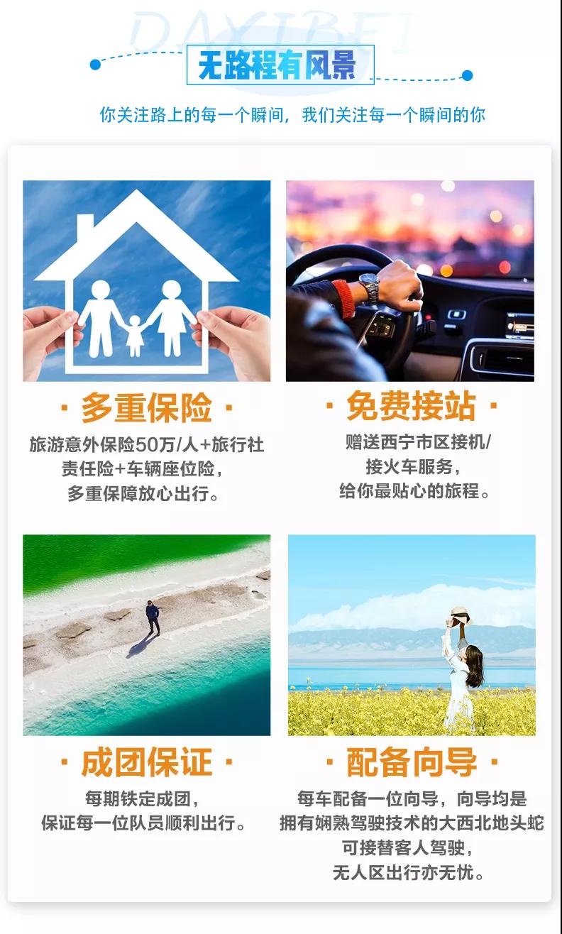 3.自駕提示:本行程全程采取自駕游出行方式,由客人掌握方向盤馳騁青海高原上;為客人安全著想,客人須有正規(guī)合格機(jī)動(dòng)車駕駛證、具備2年以上駕駛技術(shù)、無重大駕駛事故方可自駕,望您諒解。
