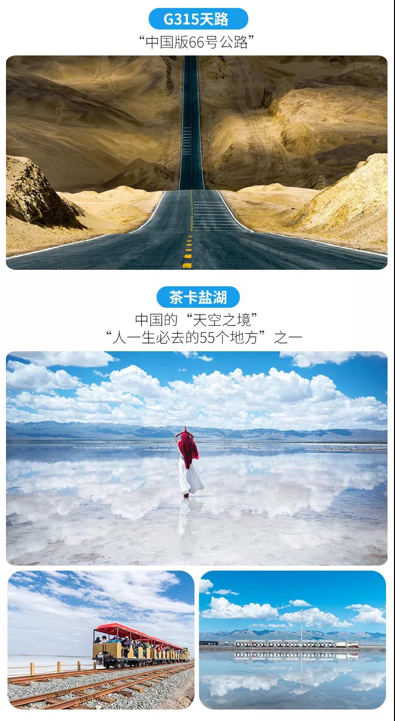 游覽過人跡罕至的茫崖翡翠湖,今天我們就去打卡炙手可熱的“天空之境”茶卡鹽湖。【茶卡鹽湖】被國(guó)家旅游地理雜志評(píng)為“人一生必去的55個(gè)地方”之一,這里的采鹽歷史非常悠久,湖水含鹽量很大,湖面上會(huì)自然結(jié)晶,一片純白。結(jié)晶之上是一層薄薄的露水,將天空、云朵和對(duì)岸的山都倒映在白色的湖里,非常漂亮,所以也被稱為“中國(guó)的天空之境”。大家可以乘坐景區(qū)內(nèi)的小火車前往景區(qū)深處游玩,如果不乘坐小火車,沿著鐵軌向湖深處散散步拍拍照片也是非常愜意的。