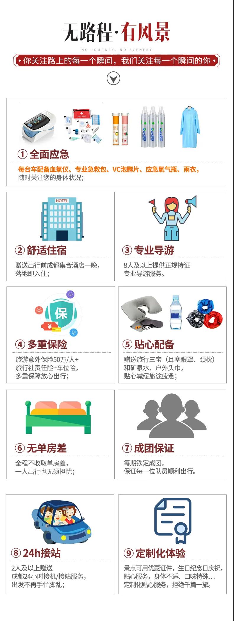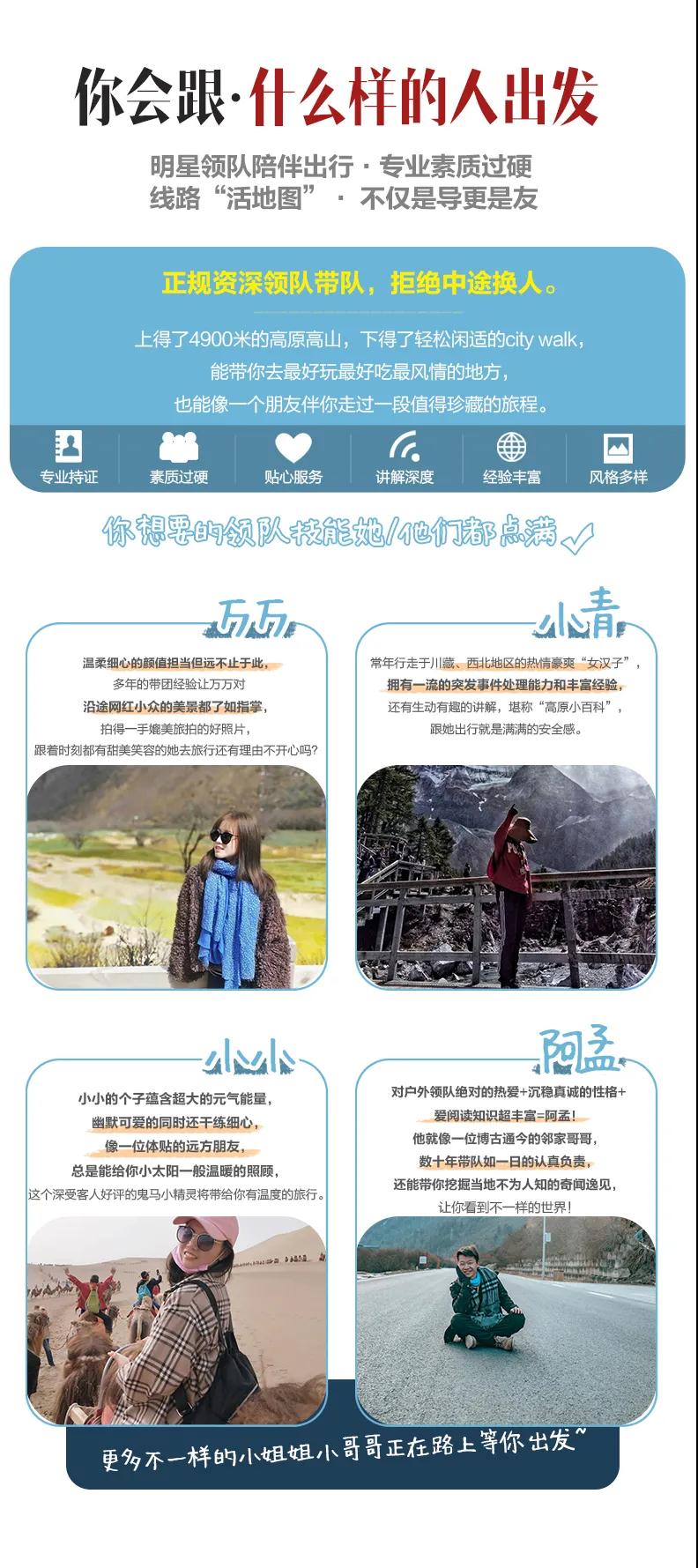 4、如途中遇不可抗因素(如高原反應、修路、塌方、車輛事故阻礙等)我方有權(quán)根據(jù)情況調(diào)整行程線路走向,此舉均是根據(jù)帶隊經(jīng)驗為大家更順利的游玩而做出的改變,希望大家理解和支持,但如造成額外費用由客人自理,望您諒解;若對行程造成影響的,我方將全力協(xié)助游客進行解決,但不承擔由此造成的損失,若因此而增加的費用,敬請游客自理。