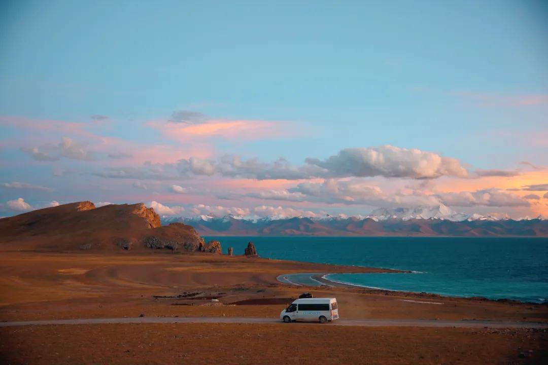 如果天氣晴好,感興趣的小伙伴還可以等待納木措日落星河,去過納木措的人都知道納木措的日落星河是非常漂亮的??粗鞣教祀H線的光線慢慢的減弱,夕陽漸漸墜入納木措的蔚藍之中,那份熾熱點燃了湖面,燒得水天一色,美得仿若不是真實存在;待到最后一絲光芒也散去,納木措夜晚宛如黑白畫卷的天空逐漸爬上幾顆星子,然后就以驚人的速度繁衍開來,高原的顏色實在太濃烈了,天的墨黑也純粹,星的光亮也純粹,這萬里星河,深邃而迷人。