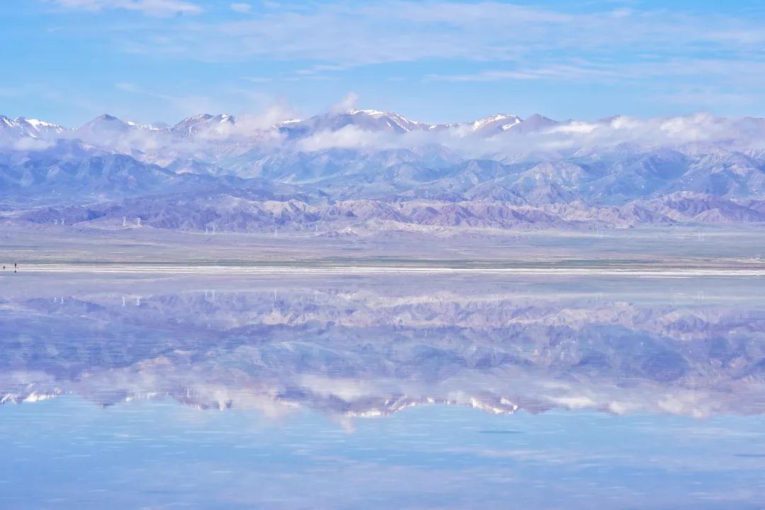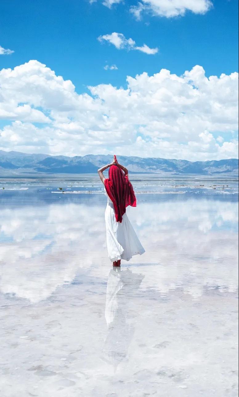 茶卡鹽湖被國家旅游地理雜志評為“人一生必去的55個(gè)地方”之一,這里的采鹽歷史非常悠久,湖水含鹽量很大,湖面上會自然結(jié)晶,一片純白。結(jié)晶之上是一層薄薄的露水,將天空、云朵和對岸的山都倒映在白色的湖里,非常漂亮,所以也被稱為“中國的天空之境”。大家可以乘坐景區(qū)內(nèi)的小火車前往景區(qū)深處游玩,如果不乘坐小火車,沿著鐵軌向湖深處散散步拍拍照片也是非常愜意的。