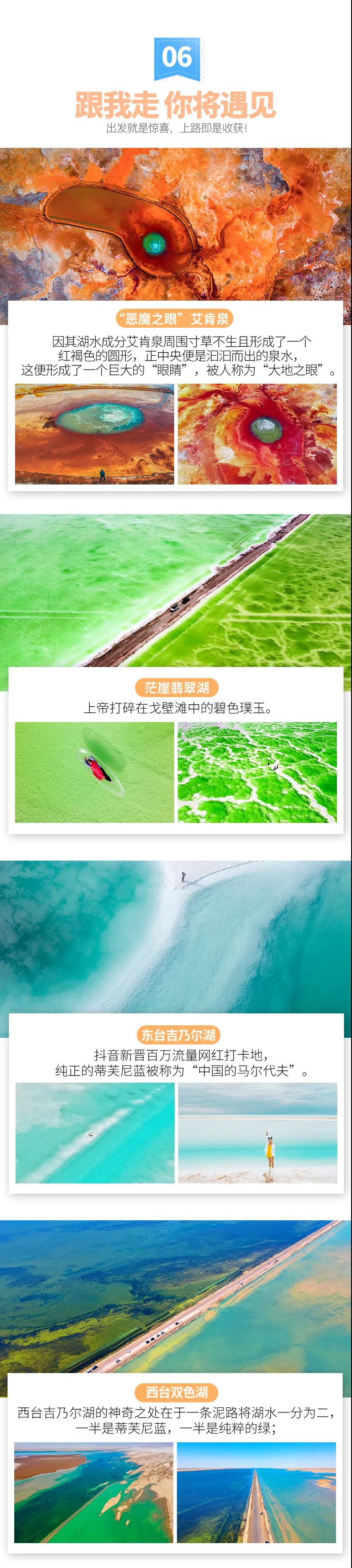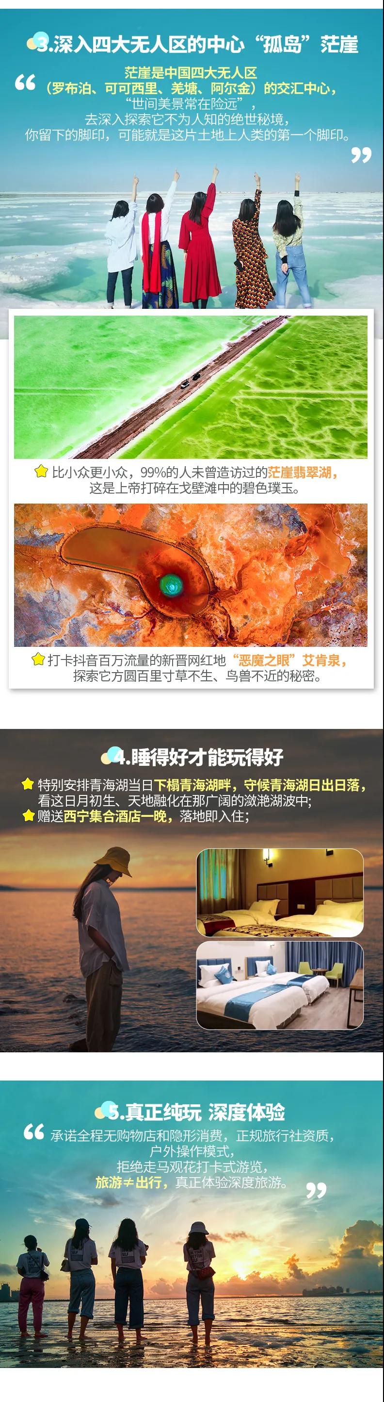 (5)茫崖翡翠湖、東/西臺(tái)吉乃爾湖、艾肯泉為小眾未開(kāi)發(fā)景點(diǎn),往年不設(shè)門(mén)票,若今年收費(fèi)門(mén)票或環(huán)保費(fèi)由游客自理。