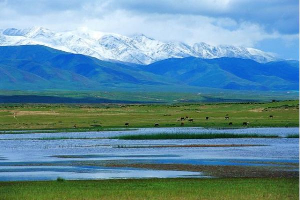 倒淌河景區(qū)內(nèi)建有紀(jì)念碑、帳篷城、風(fēng)力金輪,在這里,可以看河水靜靜流淌,也可以騎馬射箭,馳騁青藏草原。