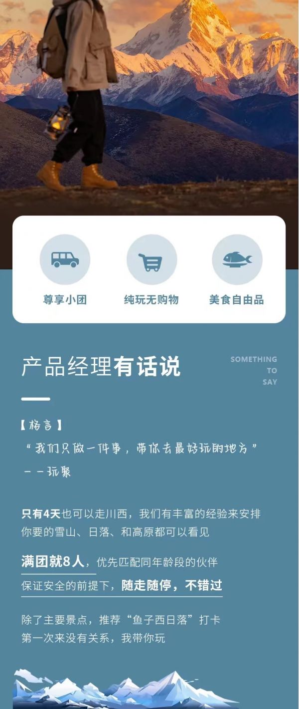 私人訂制:我們業(yè)務(wù)范圍囊括了全國(guó)各大城市,川西、西北、新疆、西藏,在路上永遠(yuǎn)有我們的身影。我們將為每一個(gè)有定制需求的你策劃出獨(dú)屬于自己的完美旅行。