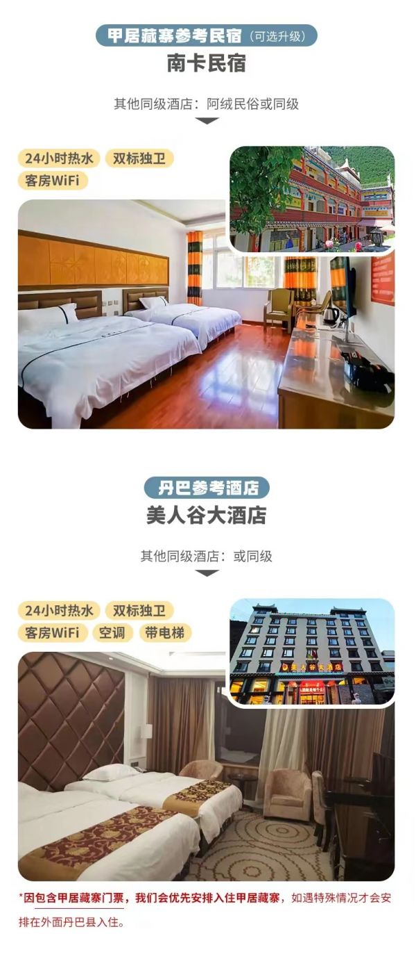 (4)對(duì)于住宿有特殊要求的隊(duì)員,請(qǐng)?jiān)趫?bào)名時(shí)告知客服(要求全程一個(gè)人住宿,大床房,三人間等等),在報(bào)名時(shí)確定費(fèi)用,上團(tuán)后臨時(shí)修改住宿,可能無(wú)法滿足其要求;