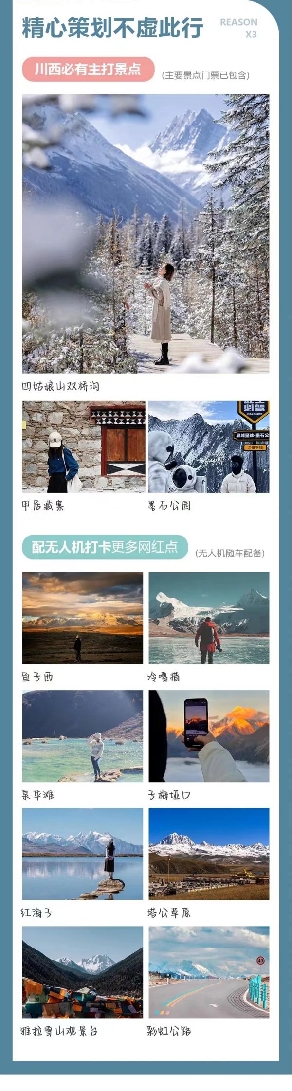 紅海子+魚子西+月亮湖+冷嘎措+墨石公園+雅拉雪山觀景臺+甲居藏寨+四姑娘山+雙橋溝?