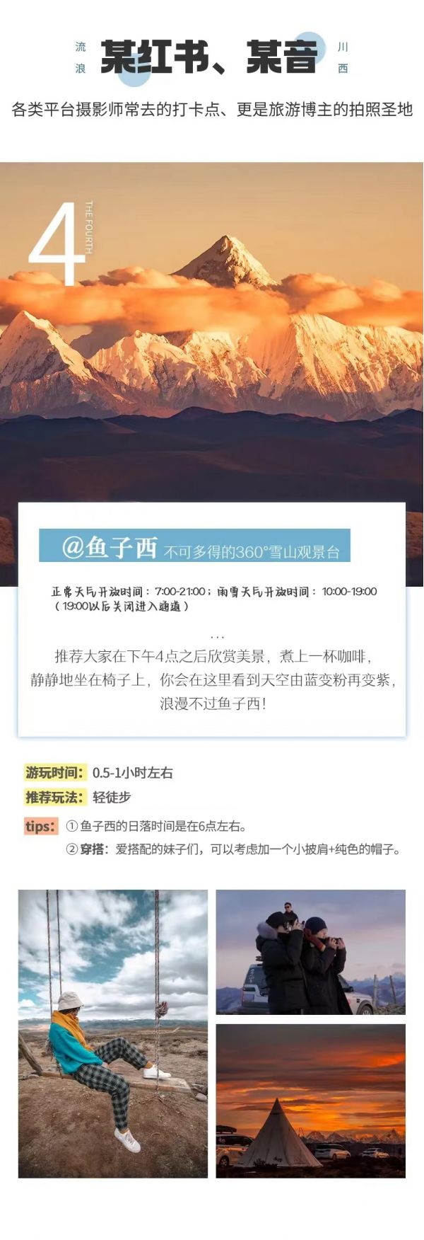 繼續(xù)前行來到魚子西,在這里你可以感受日照金山的壯闊, 也可以和雅拉雪山來一次近距離的合影,還可以遠眺貢嘎雪山和云海。夜深了,還能看到肉眼可見的星空和銀河。