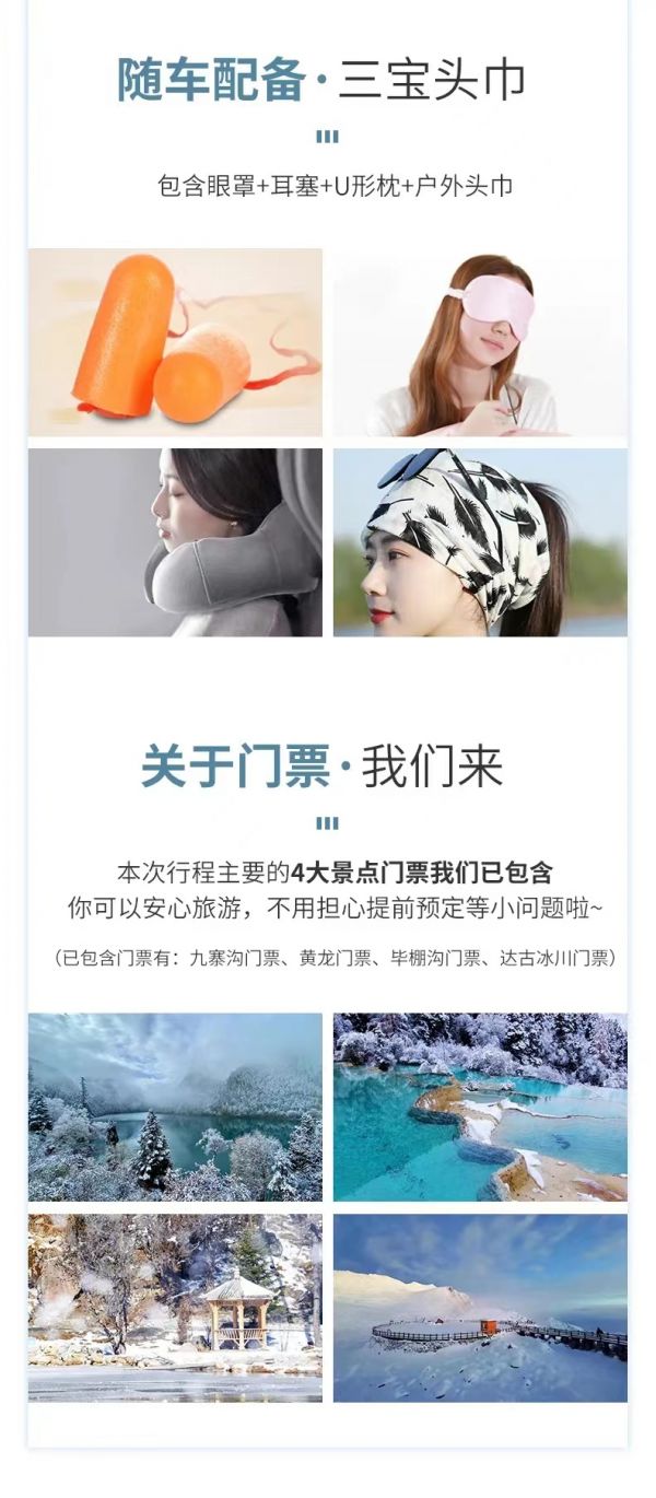 3、九寨溝面積較大游客需求不一,因此主要以游客自助游形式游覽,如無領隊陪同望您諒解。游覽開始前領隊會與您約定好集合時間,請務必按時到達指定地點,避免耽誤大家接下來的行程;