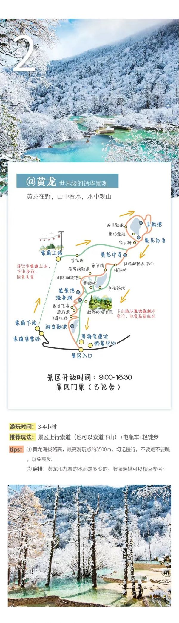 (4)冬季黃龍景區(qū)索道停運,游覽景區(qū)以徒步游覽為主,游客朋友根據自身體力進行選擇游玩量力而行。