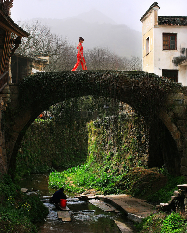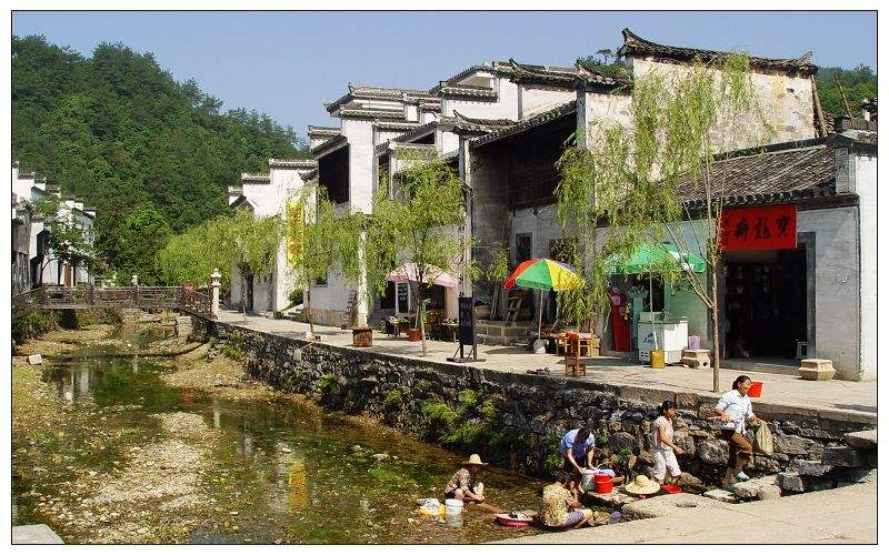 查濟古村可以看見的似乎只是陳舊破碎的景象,農婦在溪水中洗衣,犬寵在巷中慢走,然而,昔日的繁華卻變成今日平靜的農居生活。
