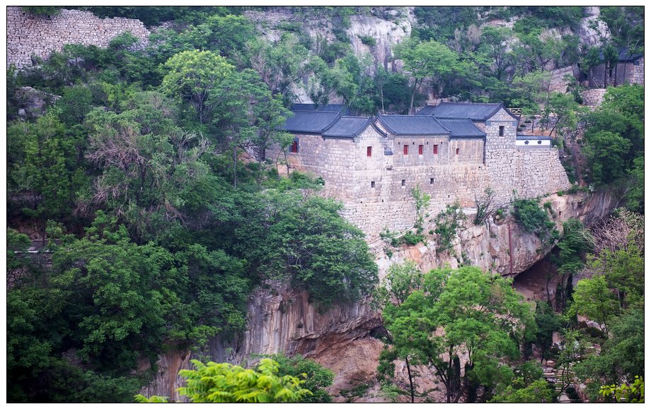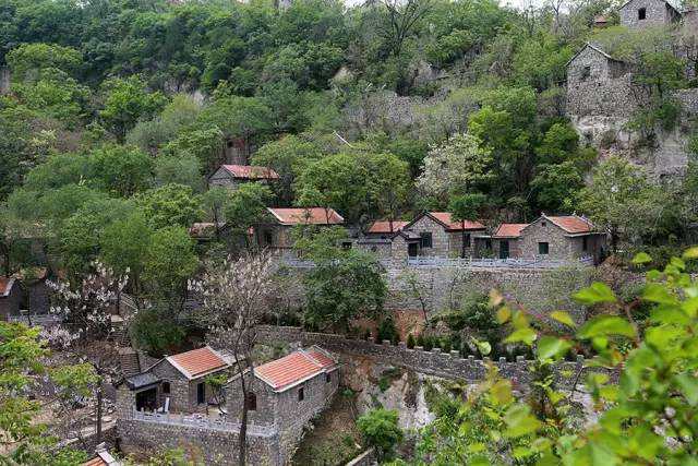 最讓人驚訝的莫過于建于懸崖峭壁上的房屋。村莊三面環(huán)山,以斷崖為障,隱于樹木之間。各種石頭砌成的房子,依山就勢,高低錯落,或依傍于懸崖旁,或坐落于巨石之上,懸崖最高處達60余米。從山下望上去,房子就象掛在天上,青石板路圍著山腰轉(zhuǎn)了幾轉(zhuǎn),好像絲帶在山間飄舞,所以村子得“天上的村落”之美名。