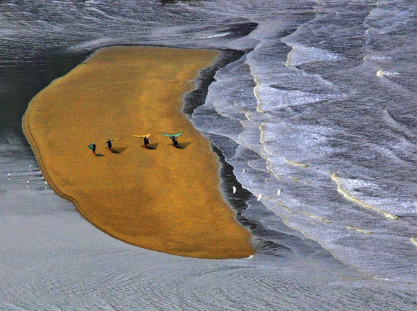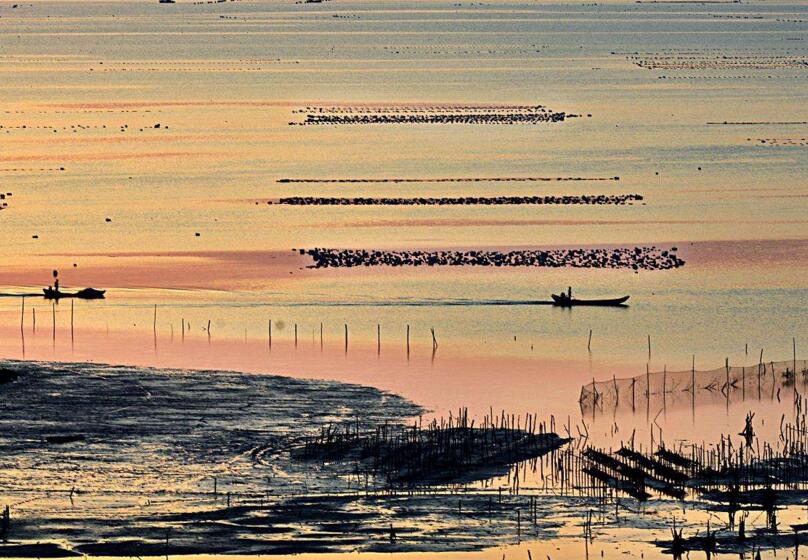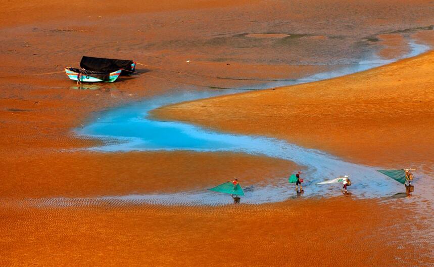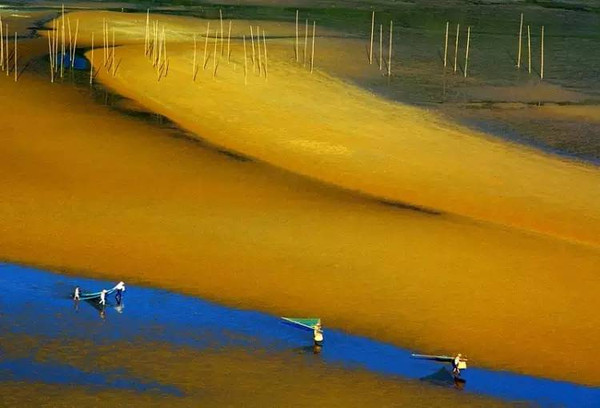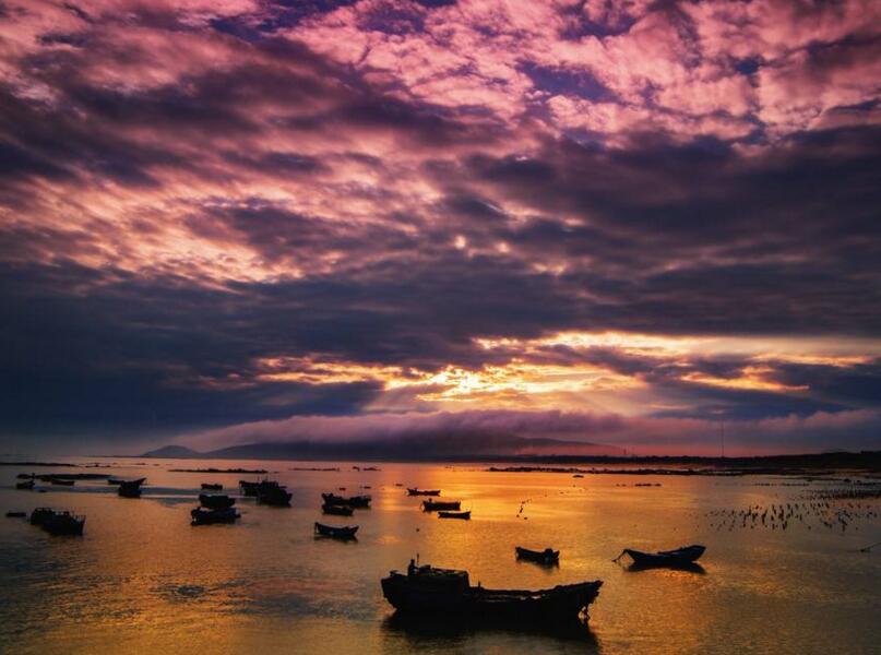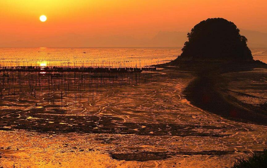 這里四季的潮汐變化、天光云影、原生態(tài)的海事活動(dòng),讓美麗神奇的海域瞬間迥異奇妙無(wú)比。那詭譎神秘的滿海竿影,那夢(mèng)幻般的海上家園,那鷗鳥掠過浪尖撲騰灘涂,那金色沙灘褐色礁叢,那港灣遠(yuǎn)空的一抹紅云束光,海上日出日落……都是那樣靈動(dòng)令奇絕。