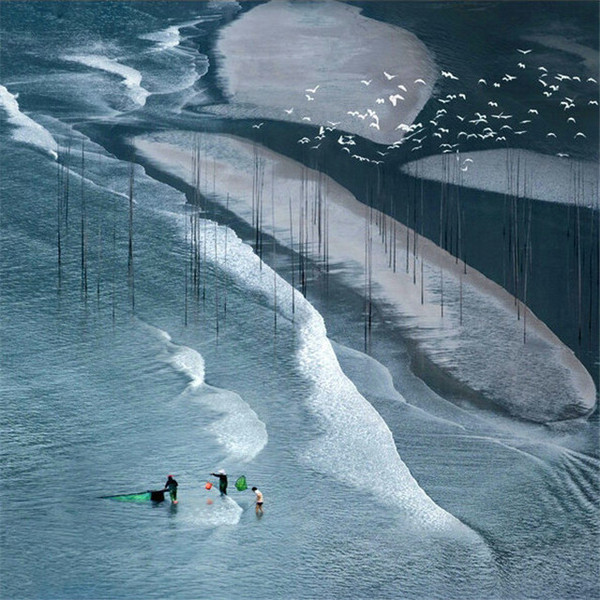 6.要充分利用霧霾天、薄陰天甚至雨天氣候以 及逆光手段拍好水墨味道作品,要充分利用晨昏低光的色溫拍攝油畫效果作品。先用廣角拍攝幾張大場(chǎng)景,之后用長(zhǎng)焦慢慢切割和雕琢畫面,選擇不同的構(gòu)圖拍攝出新奇的畫面。對(duì)灘涂做精細(xì)切割畫面成小畫面得把握好幾點(diǎn)。