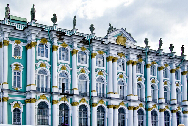 埃爾米塔什(冬宮,入內(nèi),約2小時):(周一閉館),是世界四大博物館之一,1764年由葉卡捷琳娜二世女皇創(chuàng)建,收藏著世界各地珍貴的藝術(shù)品、名畫、歷史文物共計270多萬件,分八個部分分別陳列。(可重點參觀古希臘的瓶繪藝術(shù)、古羅馬的雕刻藝術(shù)和西歐藝術(shù)三部分藏品,這些藏品在收藏界很有名氣)。