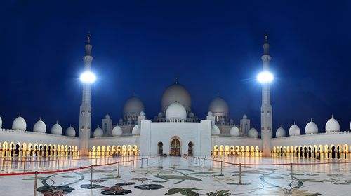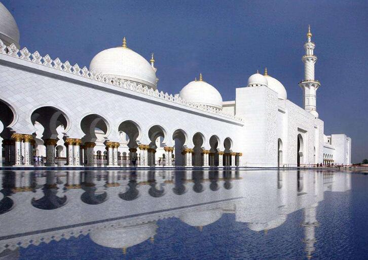 酒店自助早餐后,乘車(chē)前往中東沙漠中的花園城市阿聯(lián)酋首都【阿布扎比】(車(chē)程約1.5小時(shí))。參觀阿聯(lián)酋最大最豪華的清真寺【扎伊德清真寺】(入內(nèi)參觀1小時(shí)),【總統(tǒng)陵】。大清真寺內(nèi)有全世界最大的手工制地毯,及耗資80萬(wàn)美金的施華洛世奇水晶吊燈。整個(gè)建筑群都用希臘玉石包裹著,白色典雅。