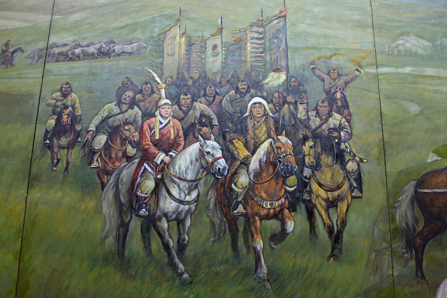 成吉思汗一生經歷60余場戰(zhàn)役,用他的勇敢、智慧、謨略,把四分五裂的草原部落統(tǒng)一在一起,變成了一個強大的蒙古民族。西到現(xiàn)在的中東,南到現(xiàn)在的越南老撾,是當時世界上疆域最龐大、最強大的國家。無論在哪個年代,無論年幼老少,在內蒙古人們的心中,他永遠是最驕傲的民族英雄。