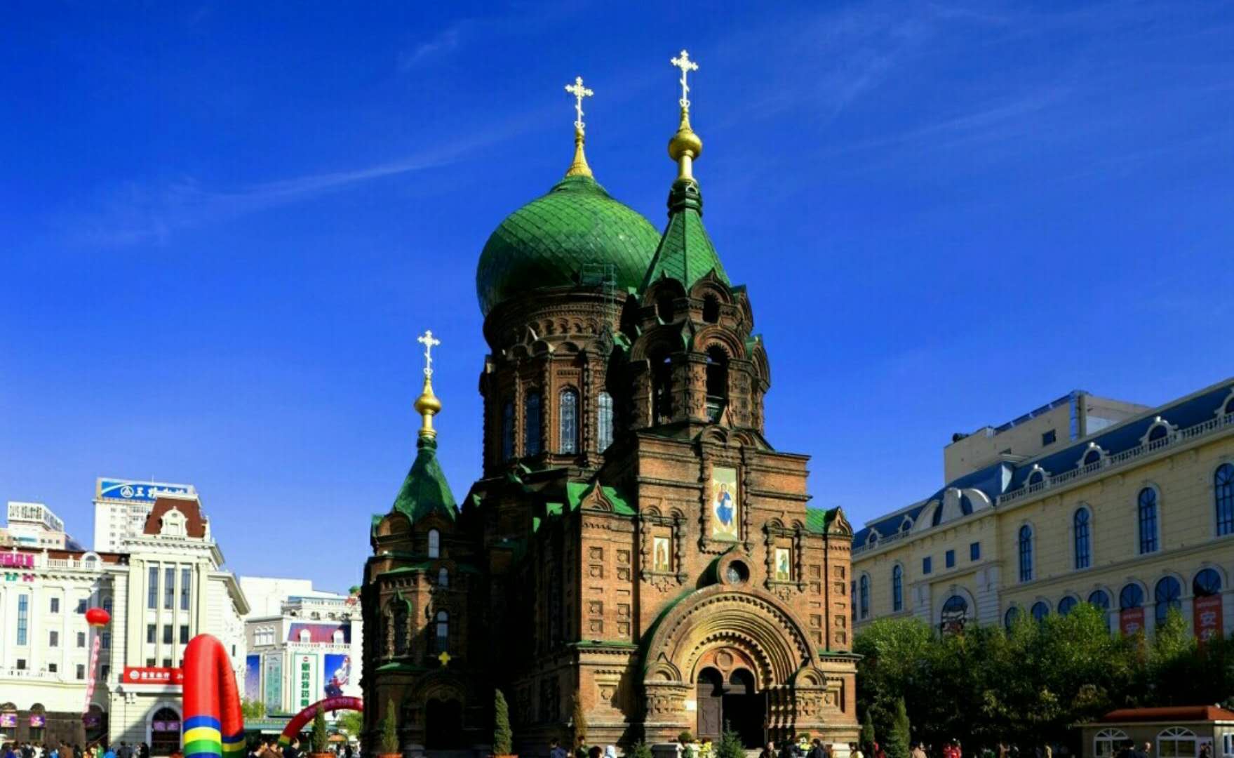 早抵達孫家,早餐后游覽沿江帶狀開放式公園【斯大林公園】(游覽不少于30分鐘),漫步松花江畔,觀看哈爾濱標(biāo)志性建筑【防洪紀(jì)念塔】(游覽不少于20分鐘),參觀遠東最大的東正教堂【圣索菲亞大教堂外景及廣場】(游覽不少于20分鐘),乘車赴馳名中外的【太陽島公園】(游覽不少于2小時,景區(qū)內(nèi)電瓶車自理20元/人):太陽石、太陽山、太陽湖、水閣云天等;可自費參觀世界上最大的室內(nèi)冰燈展(自理160元/人,游覽不少于45分鐘)。后參觀俄羅斯民貿(mào)店(約40分鐘)。中午孫家乘專列赴漠河。