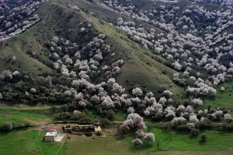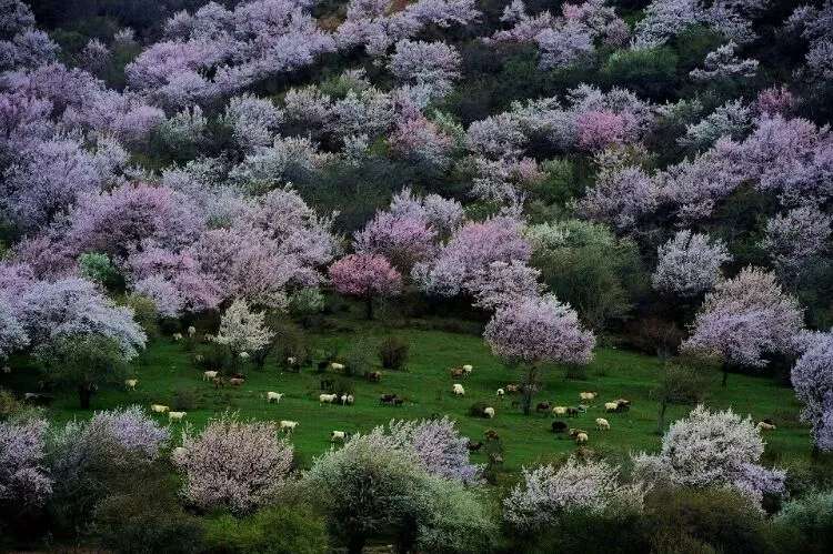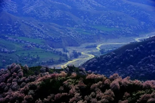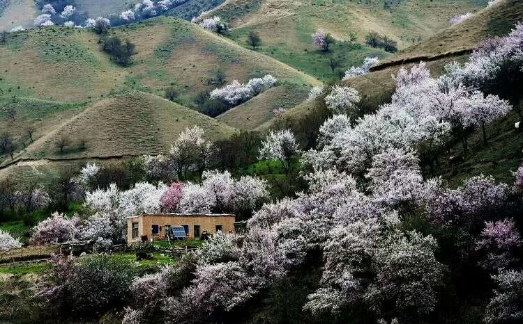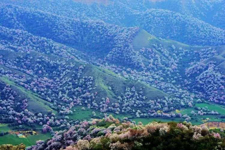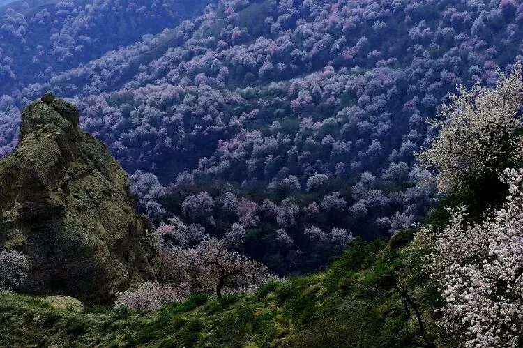 早春三月, 霍城縣大西溝福壽山景區(qū)杏花盛開,景色迷人,春花爛漫,香艷滿枝的時候,紅 蘭 粉 紫 白 各色鮮花含苞吐蕊,爭相齊放,滿山遍野,姹紫嫣紅,秋天紅葉鋪滿山腰,碩果掛滿枝頭,碧野在著名的《天山景物記》中記敘這樣的場景:“春天繁花開遍峽谷,秋天果實壓滿山腰,每當(dāng)花紅果熟,正是鳥雀百獸的樂園”寫的正是大西溝。