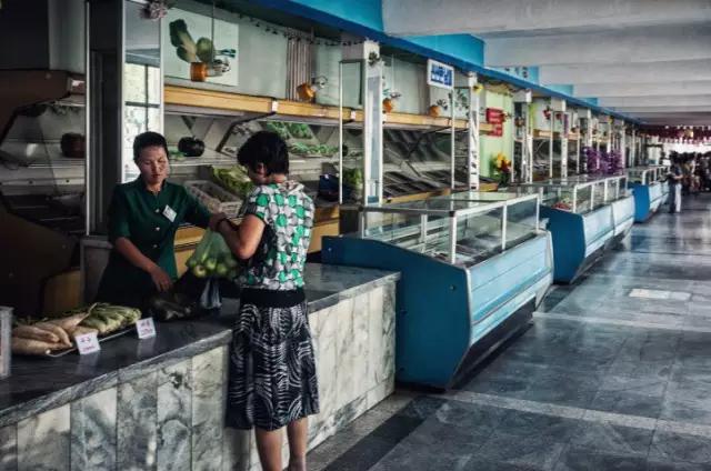 在朝鮮,有些地方能去,有些地方不能去。而不能去的顯然要比能去的多得多。他們的導(dǎo)游一般會一前一后地跟著他們。但偶爾,每當(dāng)他們倆都到前面去的時候,就會有個短短的10秒鐘,讓Huniewicz有機(jī)會和一些商店、行人能夠稍微近一點距離地接觸。而幾乎所有這些照片都是在這些短短的間隔時間里拍攝的。
