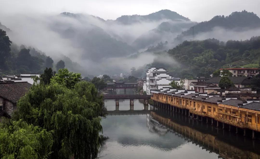 數(shù)百幢明清徽派古建筑依山傍水、錯落有致地分布在瑤河兩岸,飛檐翹角,粉墻黛瓦,掩映在青山綠水間,宛若置身于一幅清麗的山水畫中。
