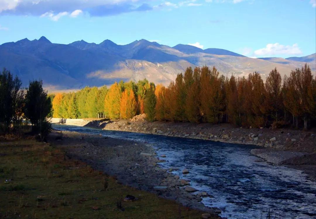 新都橋鎮(zhèn),又叫東俄羅,新都橋海拔約3300米,沿線有10余公里被稱(chēng)為“攝影家走廊”,沿著川藏公路南線前行,只見(jiàn)一個(gè)個(gè)典型的藏族村落依山傍水地散布在公路兩旁,一條淺淺的小河與公路相依相偎地蜿蜒流淌,房前路旁屹立著一顆顆挺拔的白楊,在微風(fēng)中輕輕搖曳,陽(yáng)光斑駁的灑落在地上,還可遠(yuǎn)觀蜀山之王—“貢嘎山”這就是新都橋,一個(gè)如詩(shī)如畫(huà)的世外桃源。令人神往的“光與影的世界”、“攝影家的天堂”。